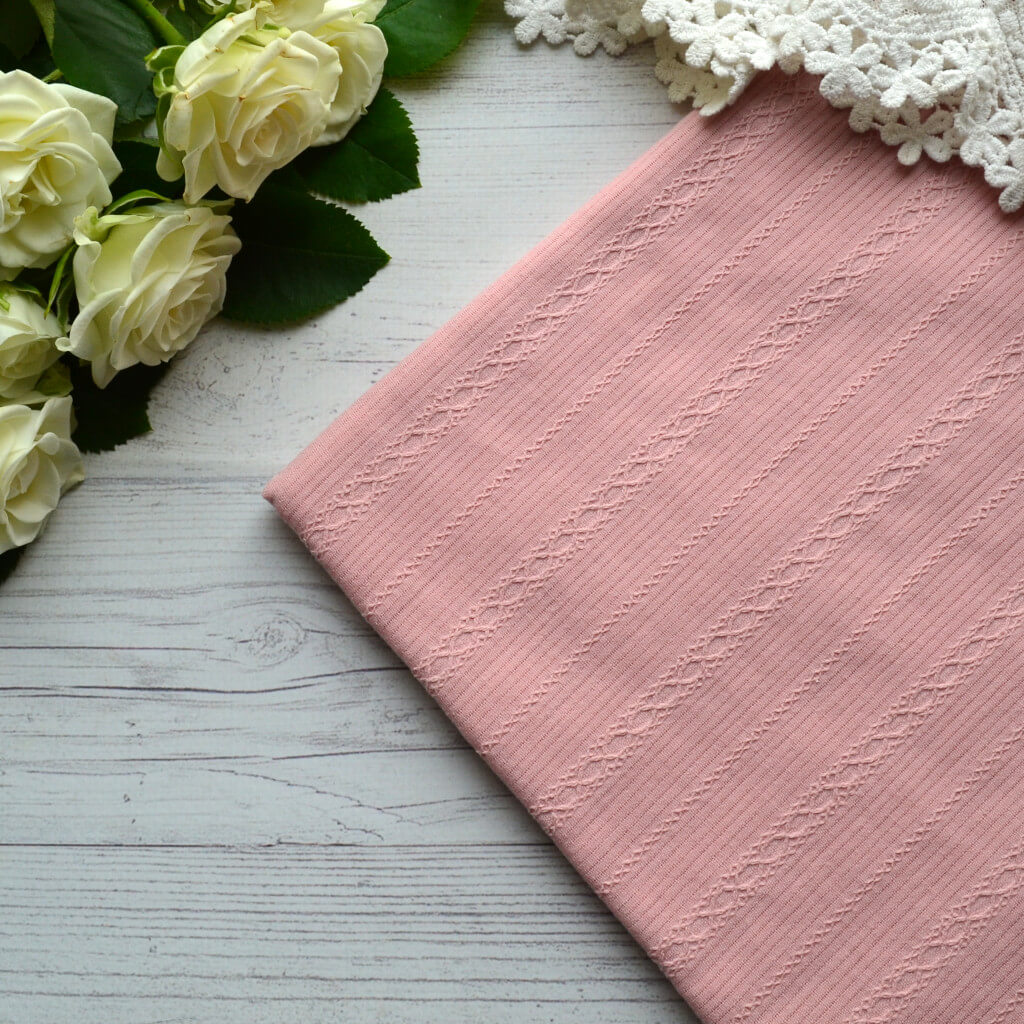 Батист із вишивкою рожевий Відріз 25*45см TKB008