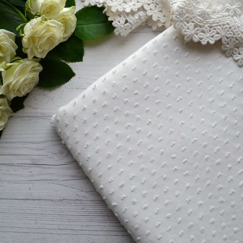 Батист з набивним горошком теплий білий Відріз 34*50см TKB013