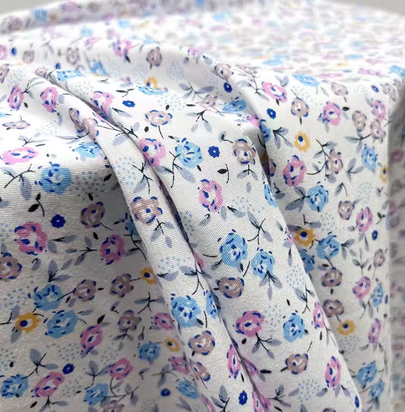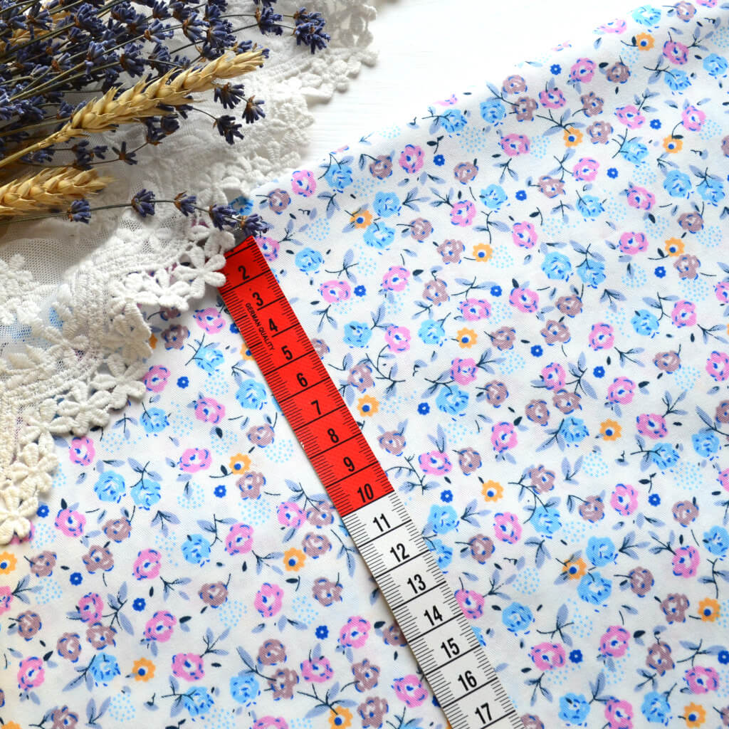 Бавовняна тканина дрібні квіточки блакитні і рожеві 39*50см TKK050