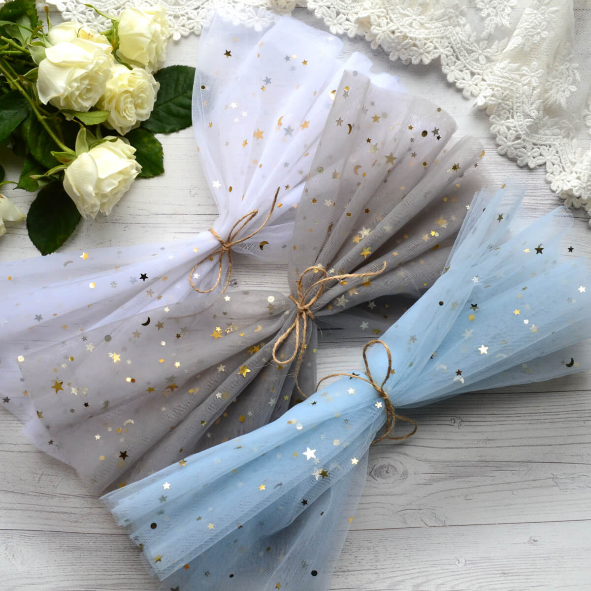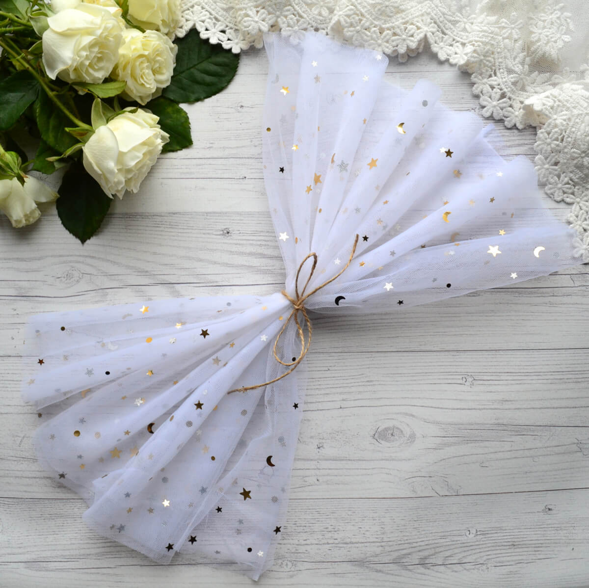 Фатин середньої жорсткості білий із зірками Відріз 30*160см TF39