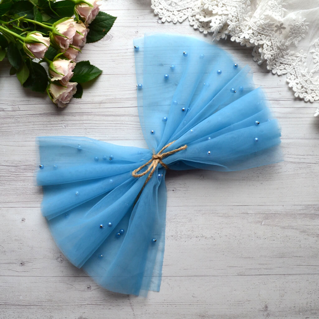 Фатин середньої жорсткості блакитний з перлами Відріз 29*75см TF58