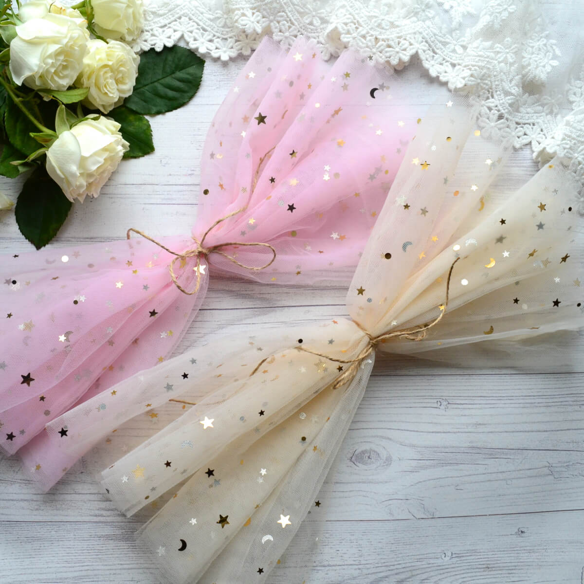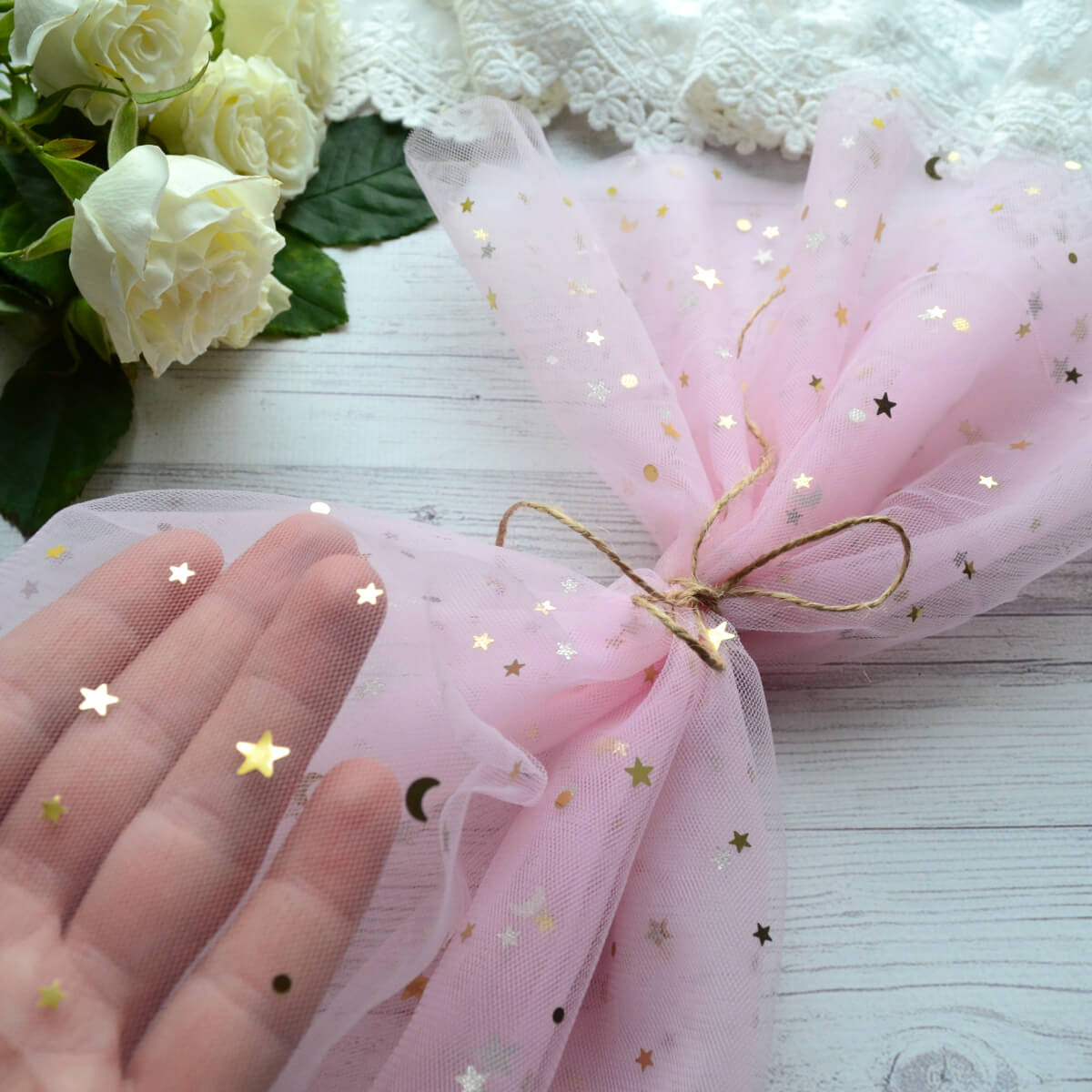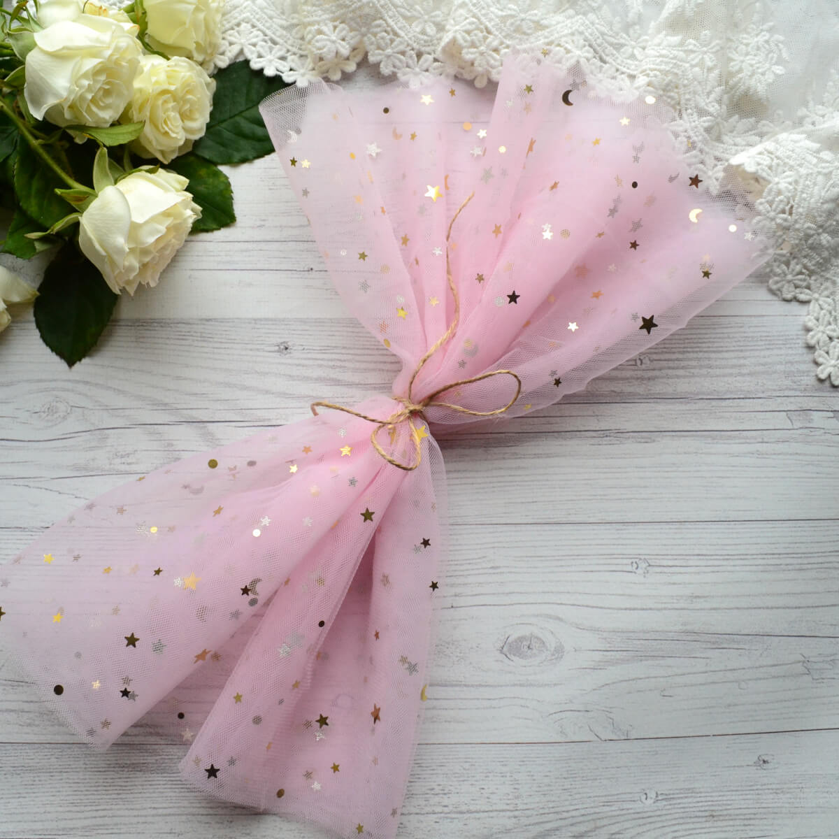 Фатин середньої жорсткості рожевий із зірками