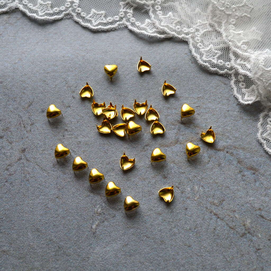 Цвяшки крабики заклепки для лялькового взуття серце золото 6 мм 10шт FN055