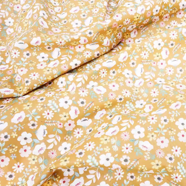 Тканина з бавовни гірчичні квіти відріз 39*50см TKK046