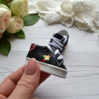 Кеди для ляльок білі із золотом. Розмір 5*2,6см.