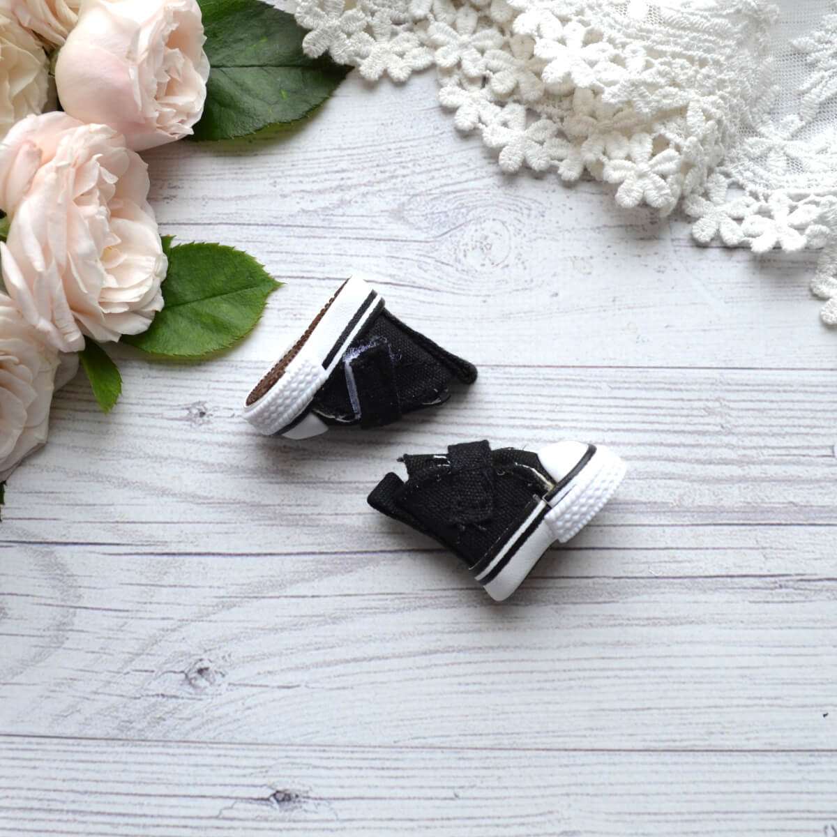 Кеди для ляльок на липучці чорні 3,5*1,5см AK95