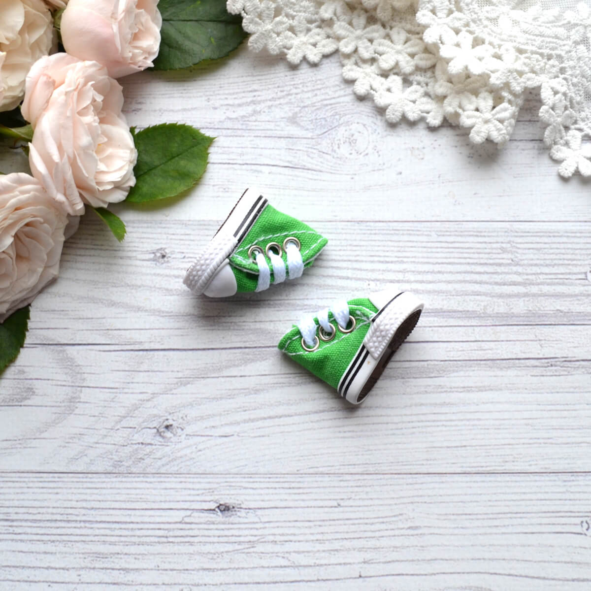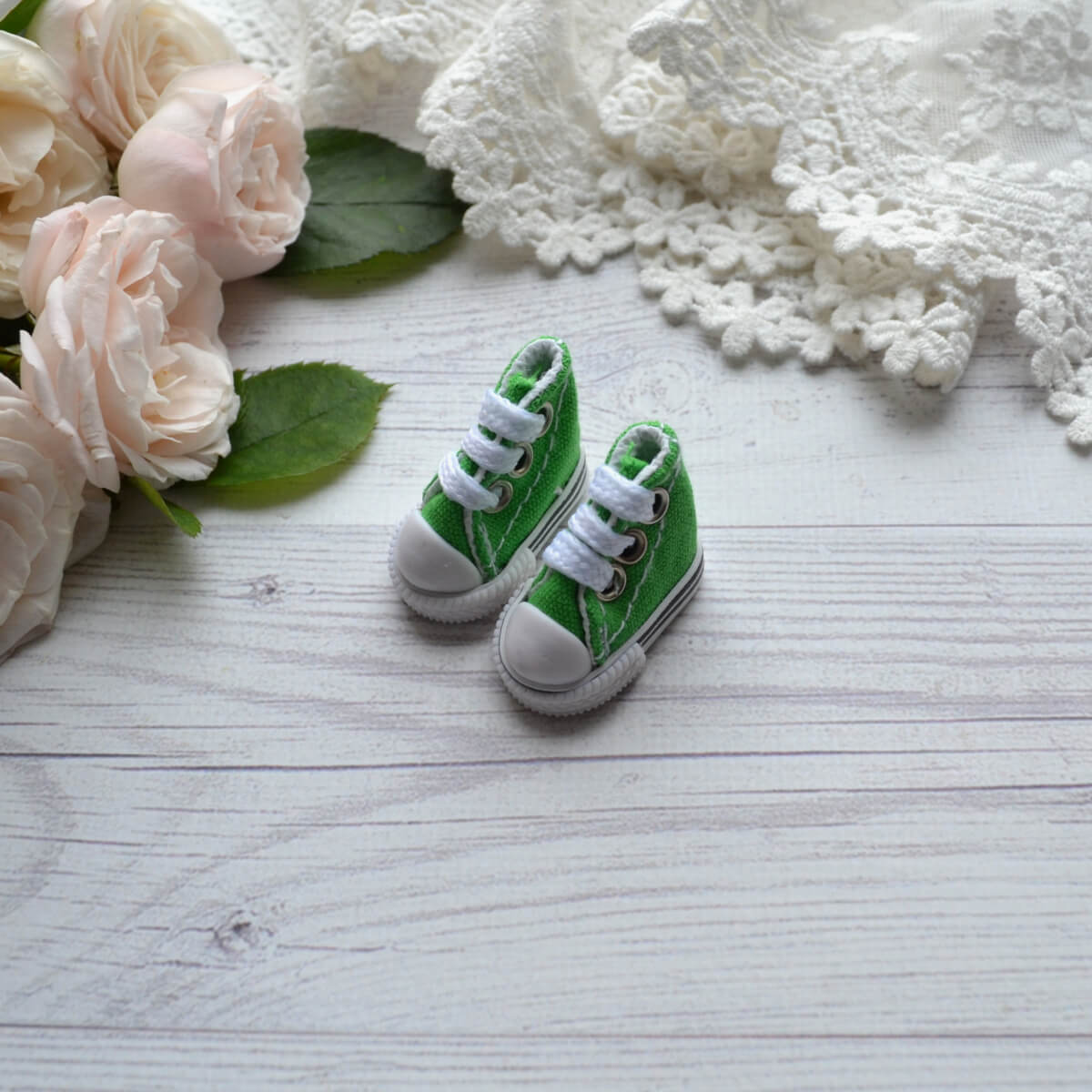 Кеди для ляльок на шнурках зелені 3.5*1.5см AK100