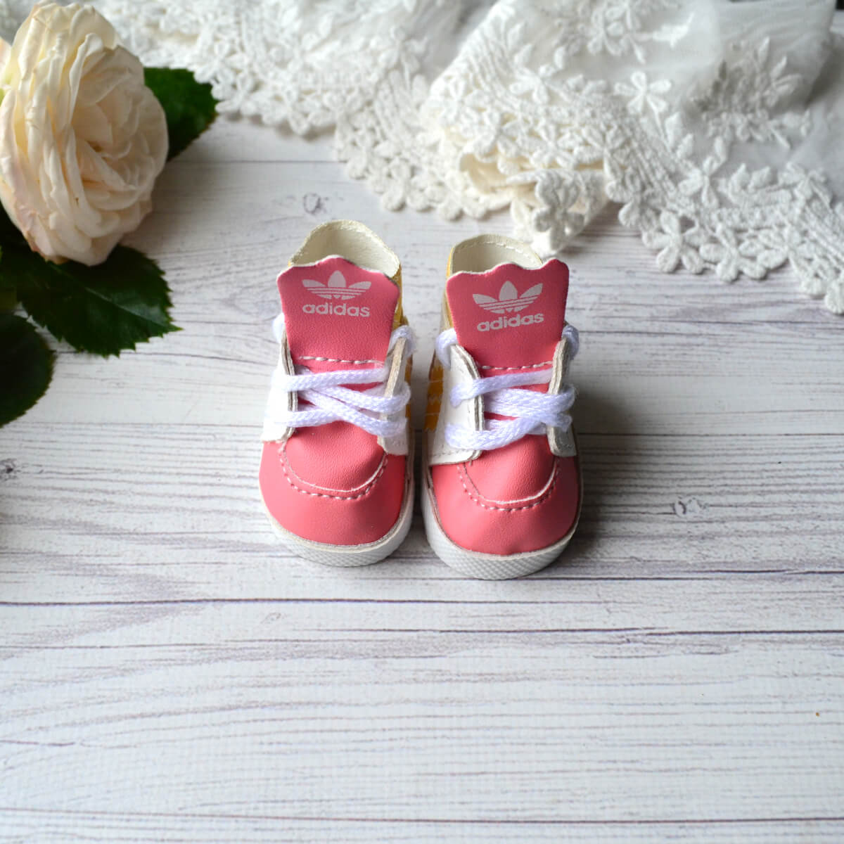 Кеди для ляльок на шнурках рожеві 5,5*2,5см AK82