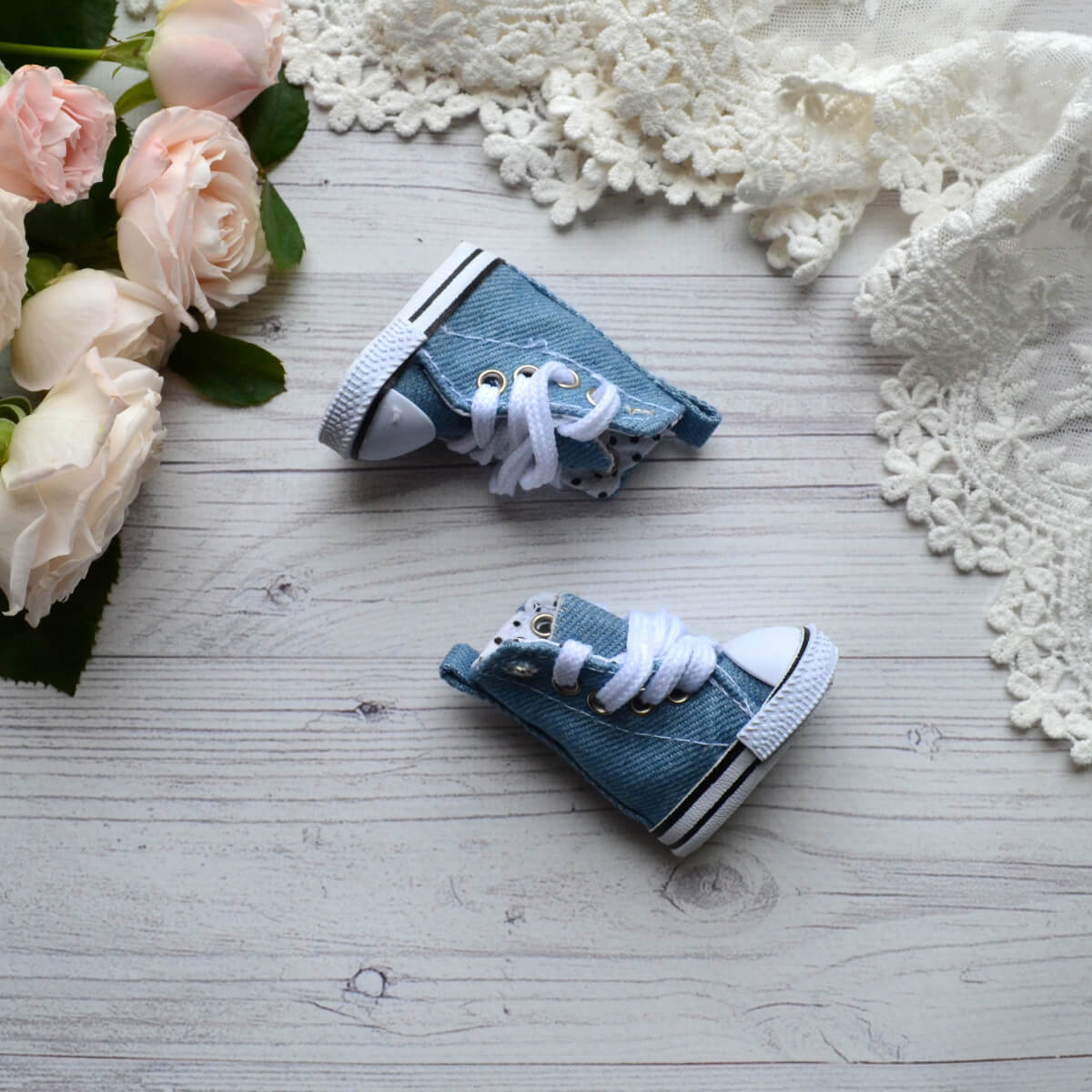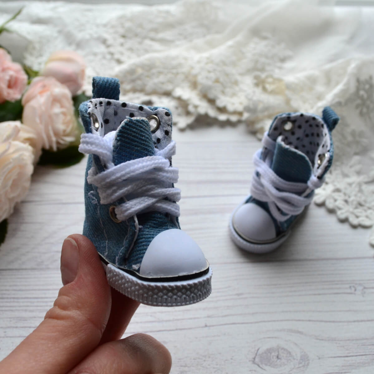 Кеди для ляльок високі джинсові. Розмір 5 * 2,5см