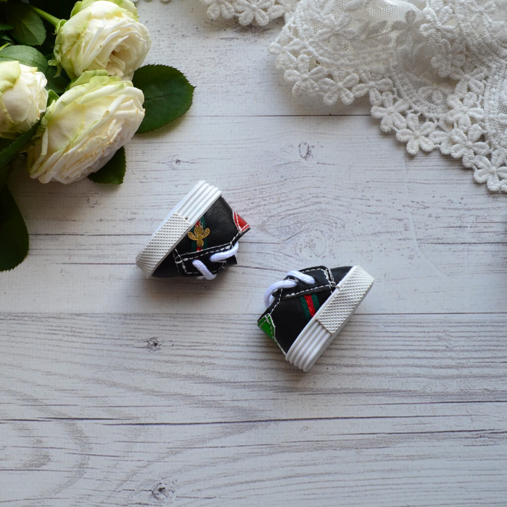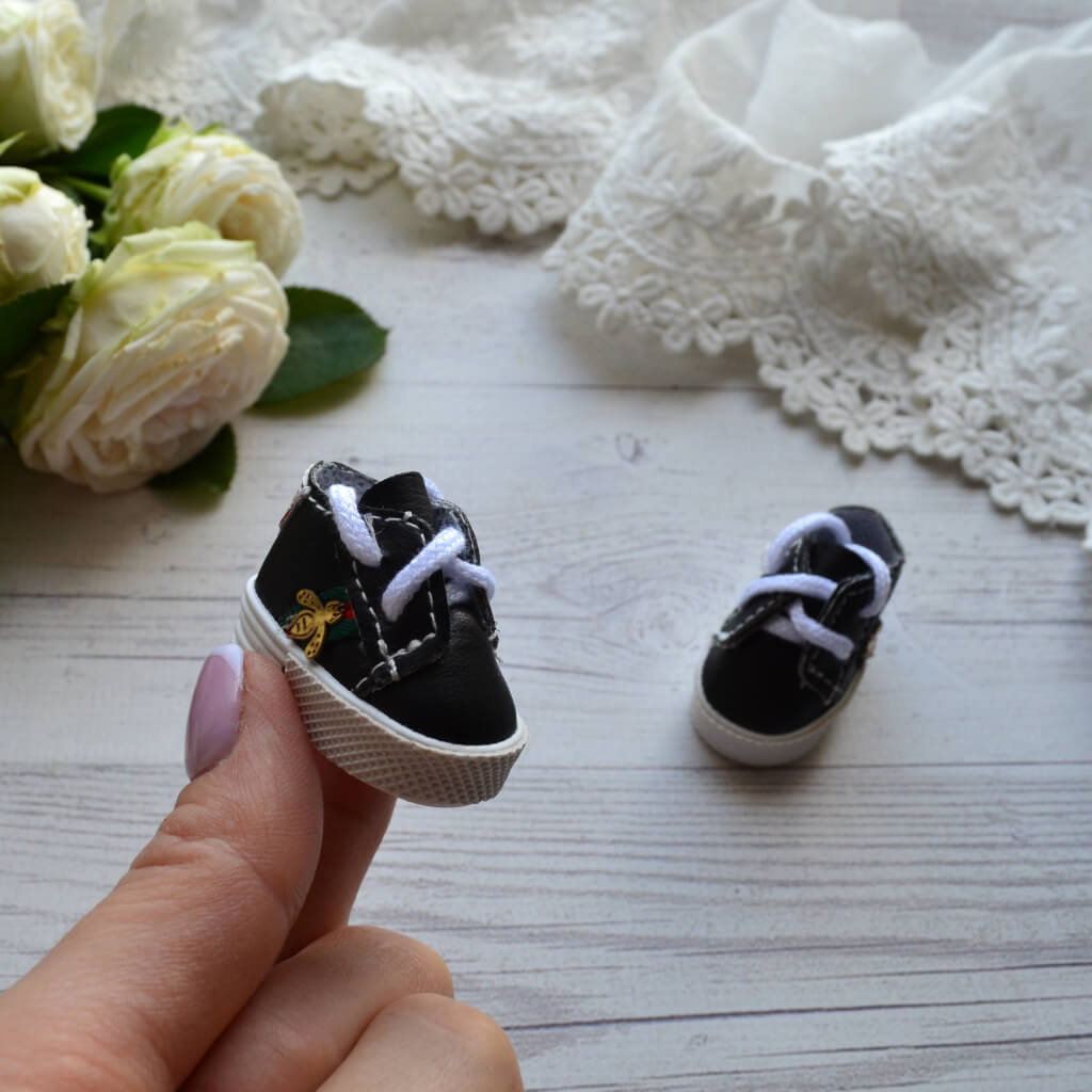 Кросівки для ляльки Gucci чорні. Розмір 4* 1,8см