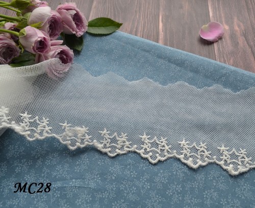 Мереживо на сіточці 7см теплий білий Відріз 100см МС28
