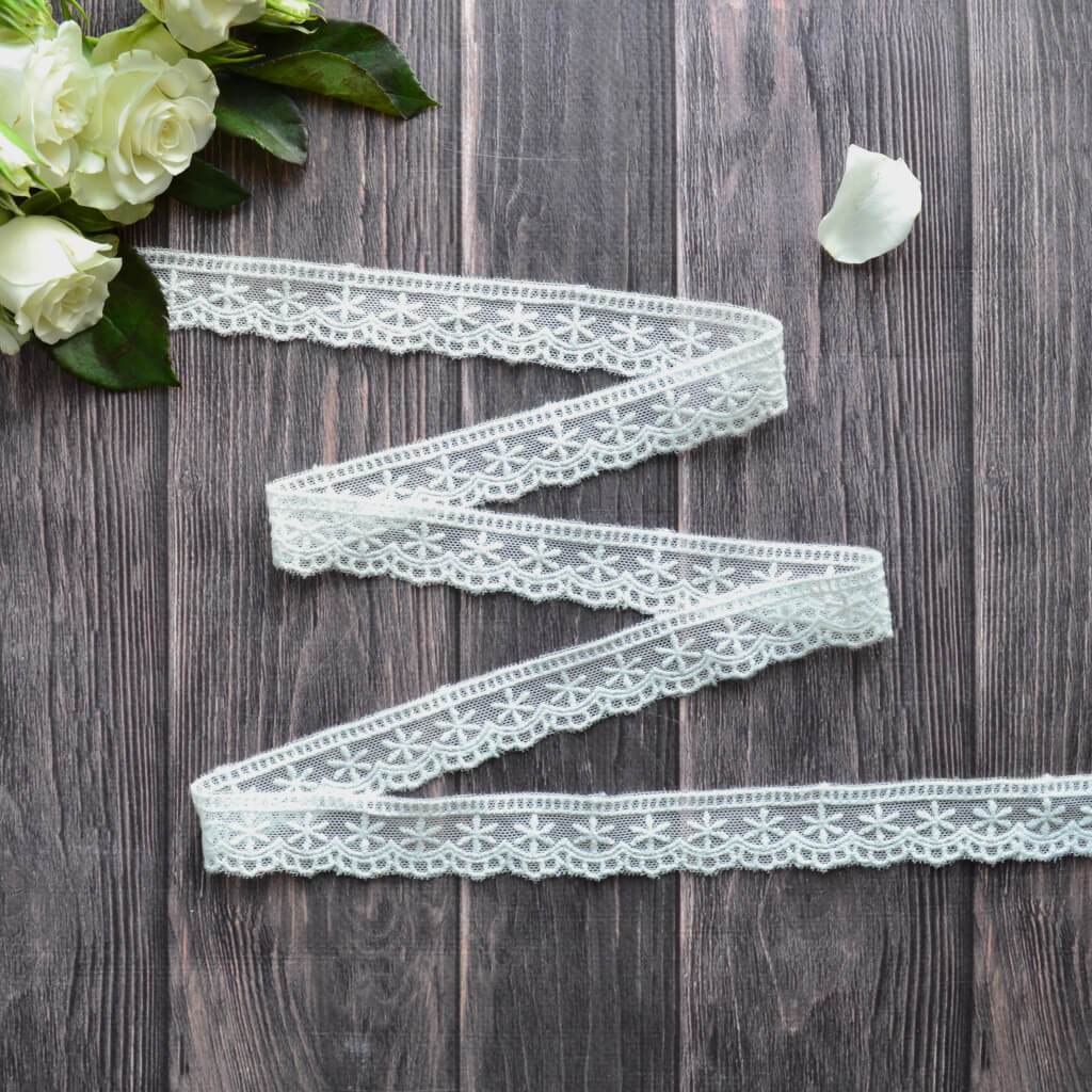 Мереживо на сіточці теплий білий 2см Відріз 100см MC80