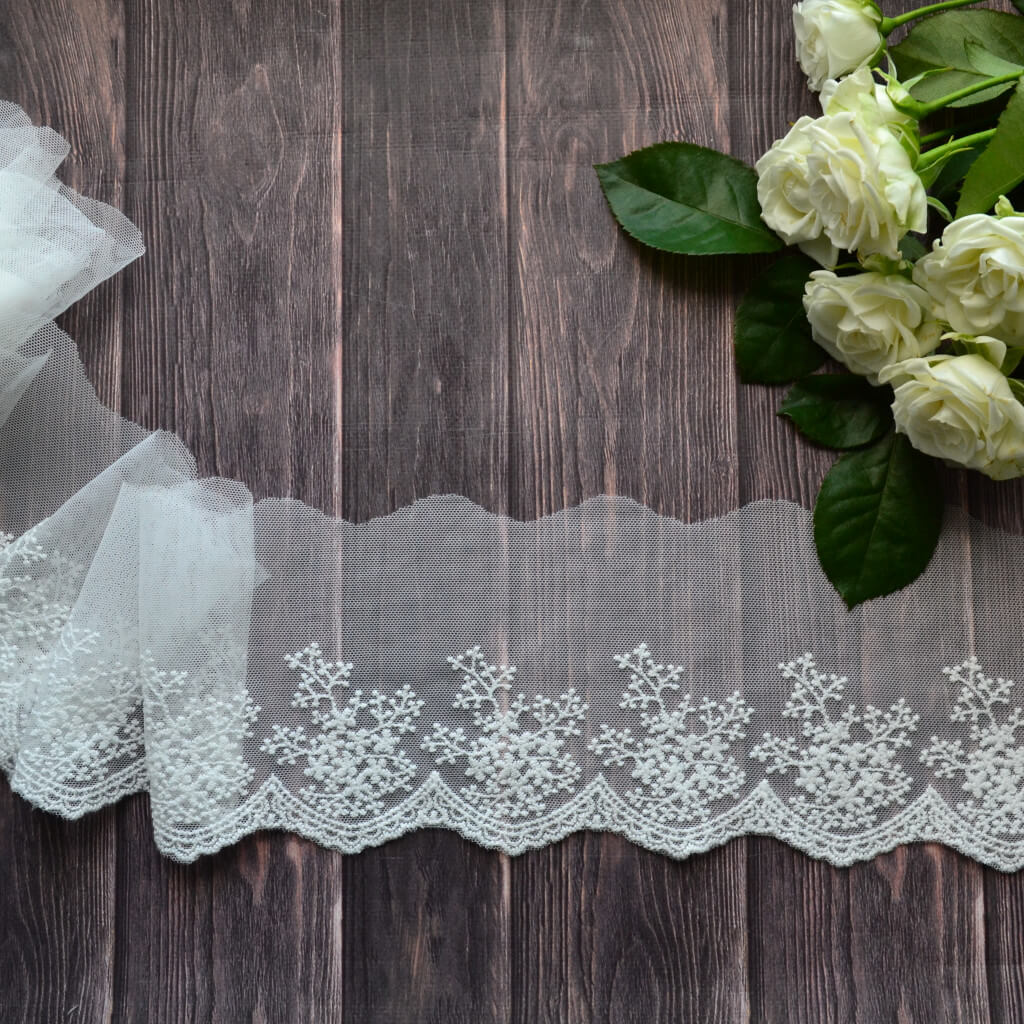 Мережива на сітці теплий білий. Ширина: 10 см.