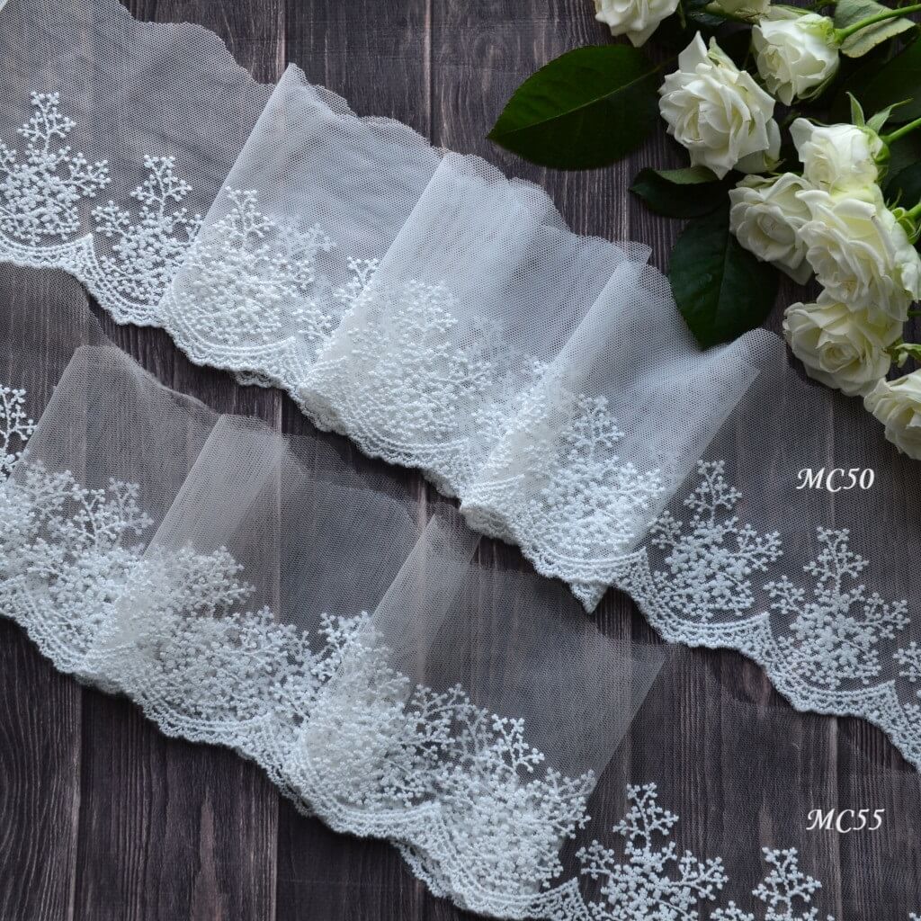 Мереживо на сітці теплий білий 10см Відріз 100см MC50