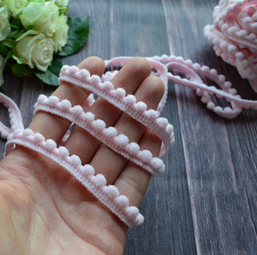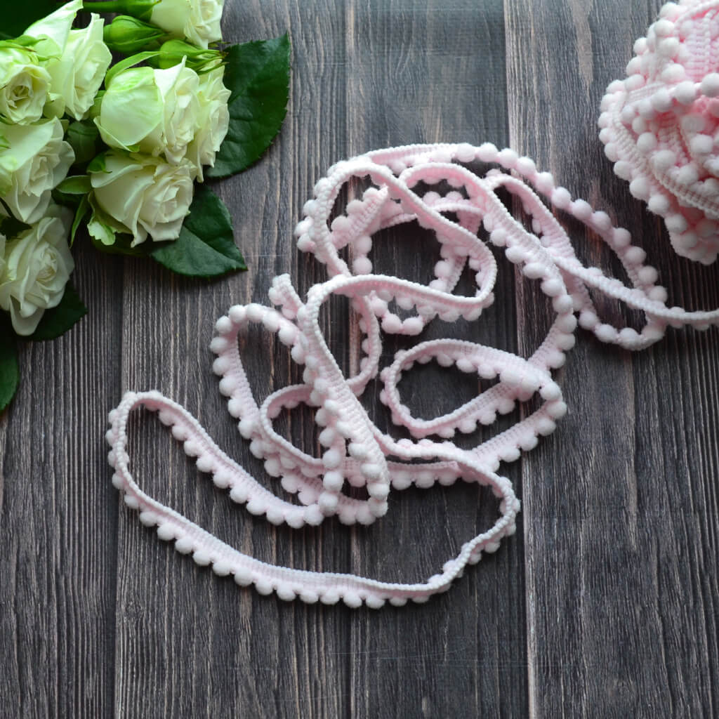 Стрічка з помпонами рожева. Розмір 10мм, розмір помпона 0,5мм.