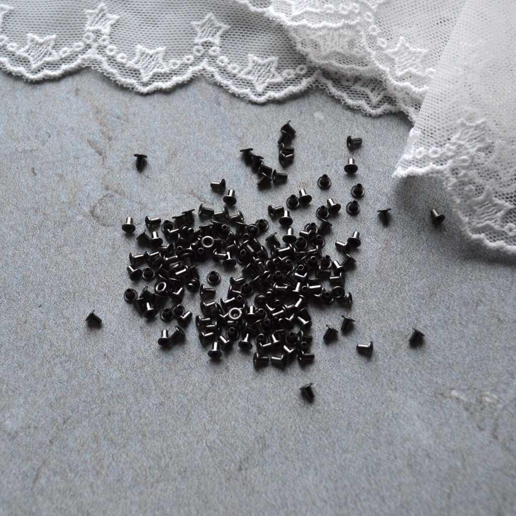Люверси для взуття ляльки 1мм чорне срібло. Розмір 1мм. (діаметр внутрішнього отвору)