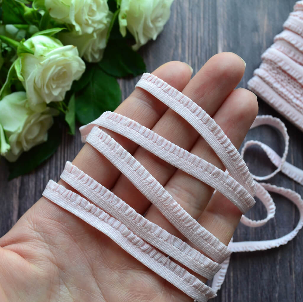 Мереживо на гумці для шиття рожеве. Ширина: 6 мм.
