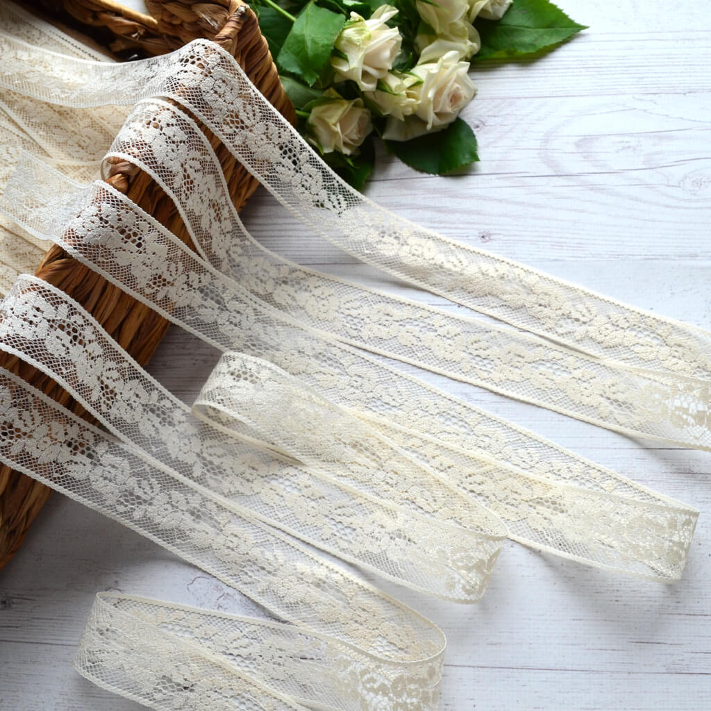 Мереживо з трояндами бежевий синтетика 28 мм M128