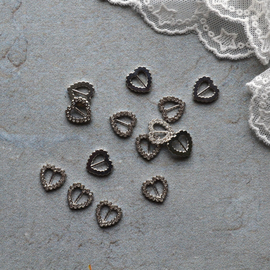 Міні пряжка для лялькового одягу 11*11мм для ременя 5мм срібло зі стразами 1шт. MF010