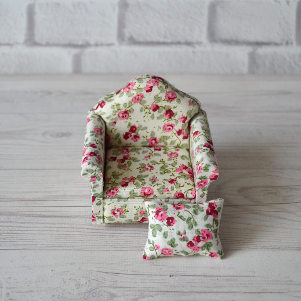 Мініатюрне м’яке крісло для ляльки бежеве з квітами 7*13.5*6см TU013