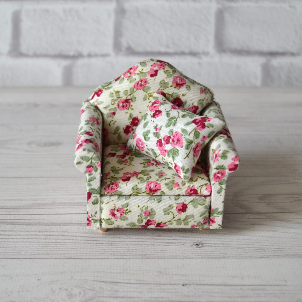 Мініатюрний диван для ляльки . Розмір крісла — 7,5*8*6см