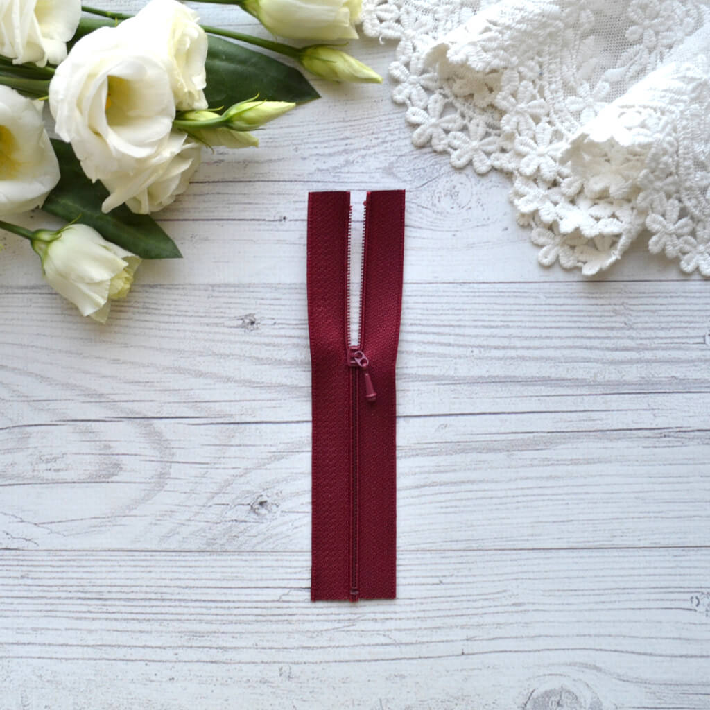 Блискавка для лялькового одягу бордова. Розмір 12см*2,2см.