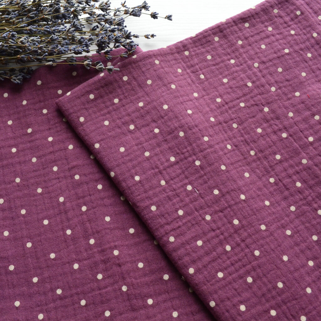 Муслін тоненька жата бавовна фіолетова в горошок Відріз 34*25см MUS116