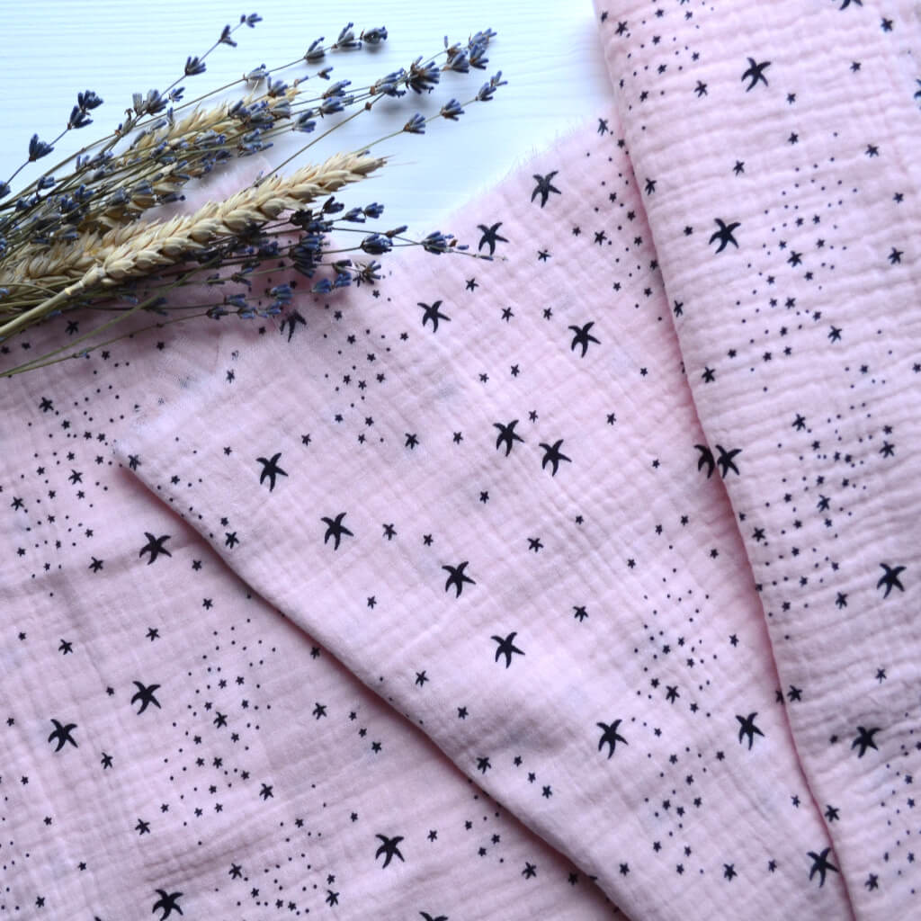 Муслін тоненька жата бавовна рожевий морська зірочка Відріз 34*25см MUS033