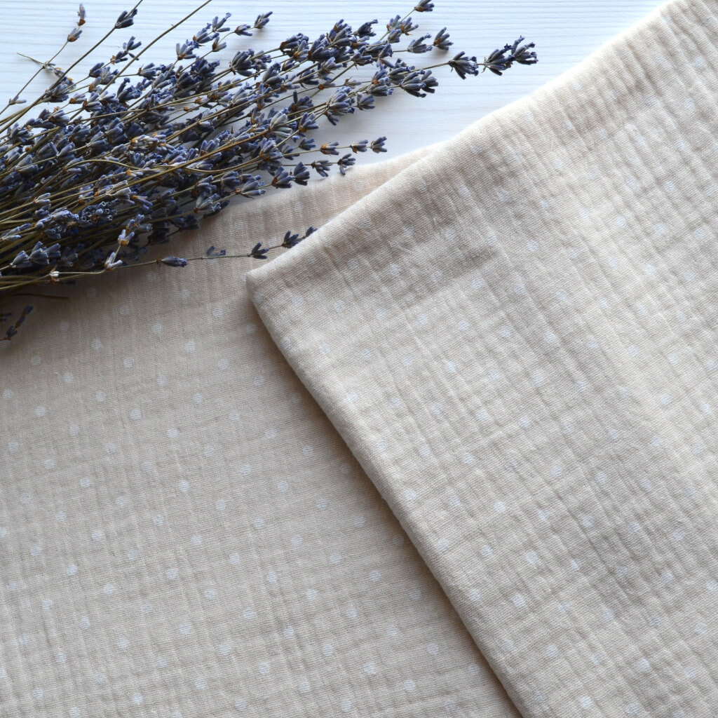 Муслін тоненька жата бавовна світло-бежева в горошок Відріз 34*25см MUS111