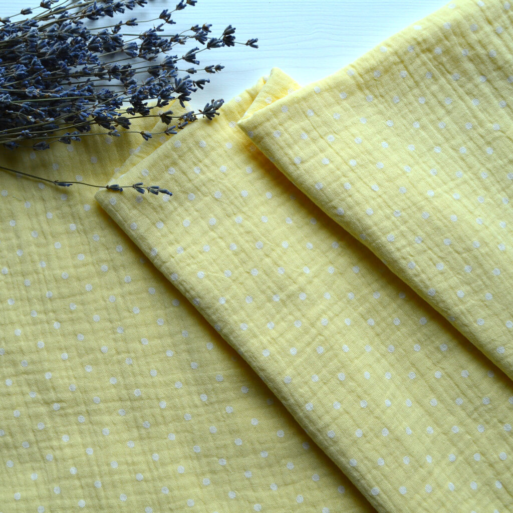 Муслін тоненька жата бавовна жовта в горошок Відріз 34*25см MUS113