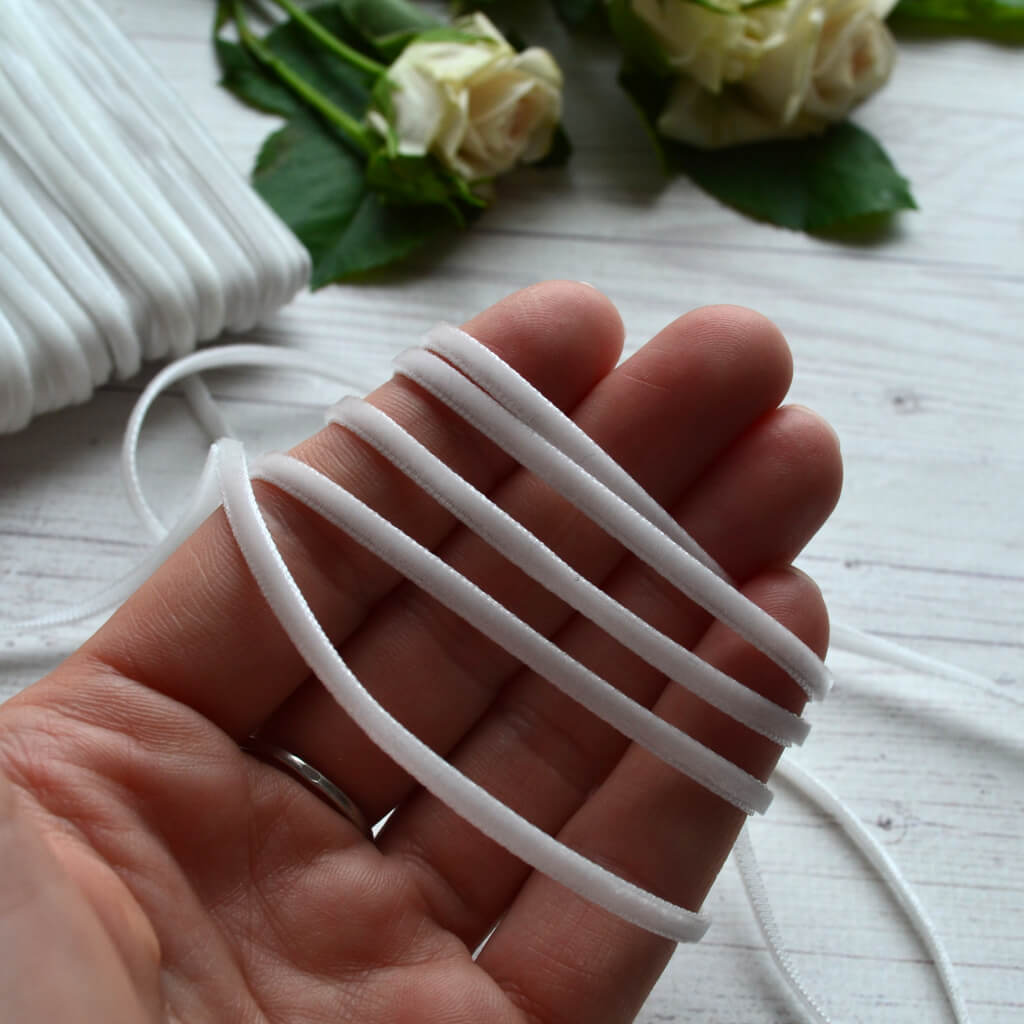 Оксамитова стрічка для шиття біла 3мм MB015