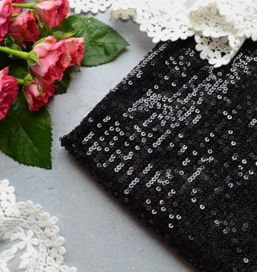 Паєткова стрейчева тканина чорна. Ширина тканини 130см.