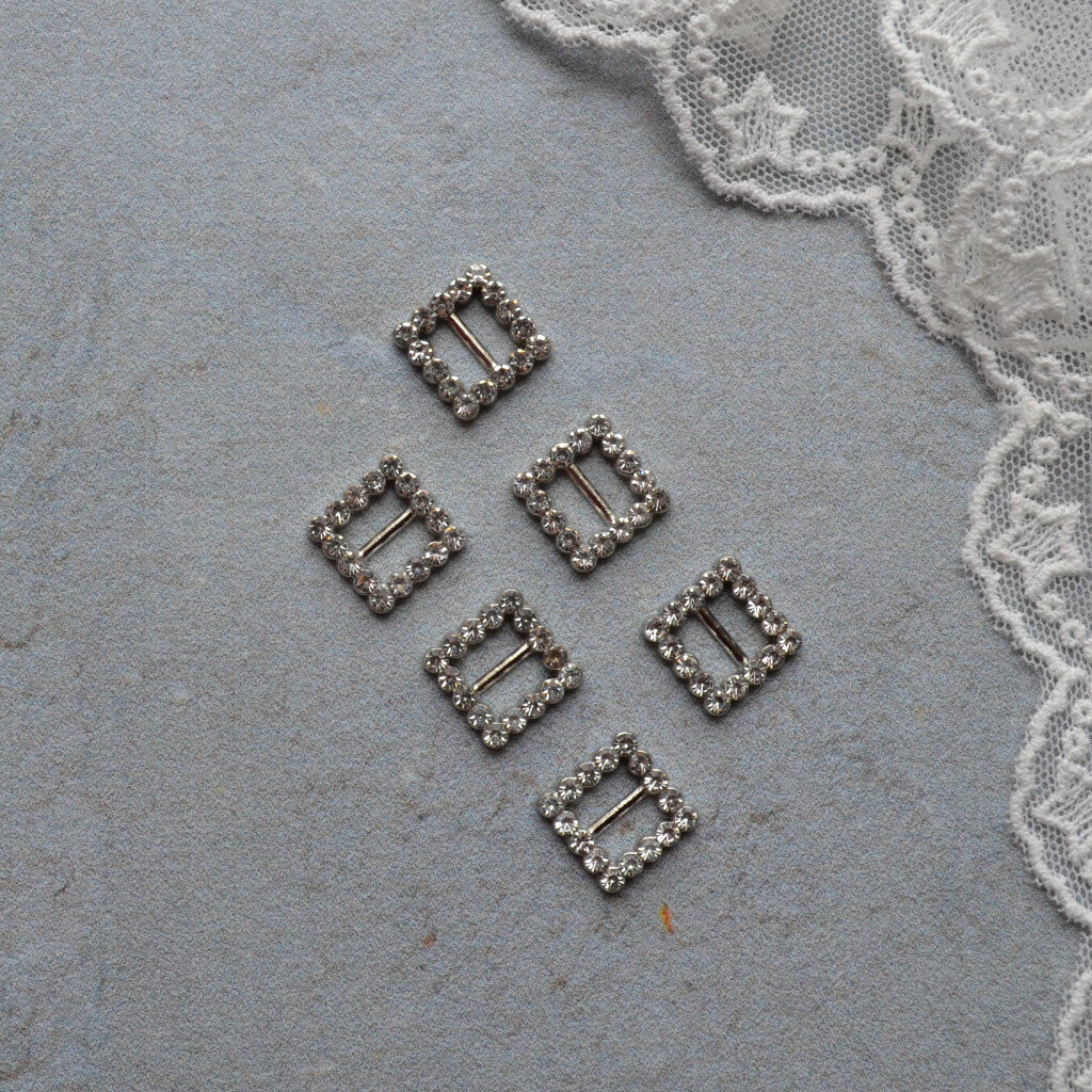 Пряжка для лялькового одягу срібний квадрат зі стразами 12*12мм 1шт MF003