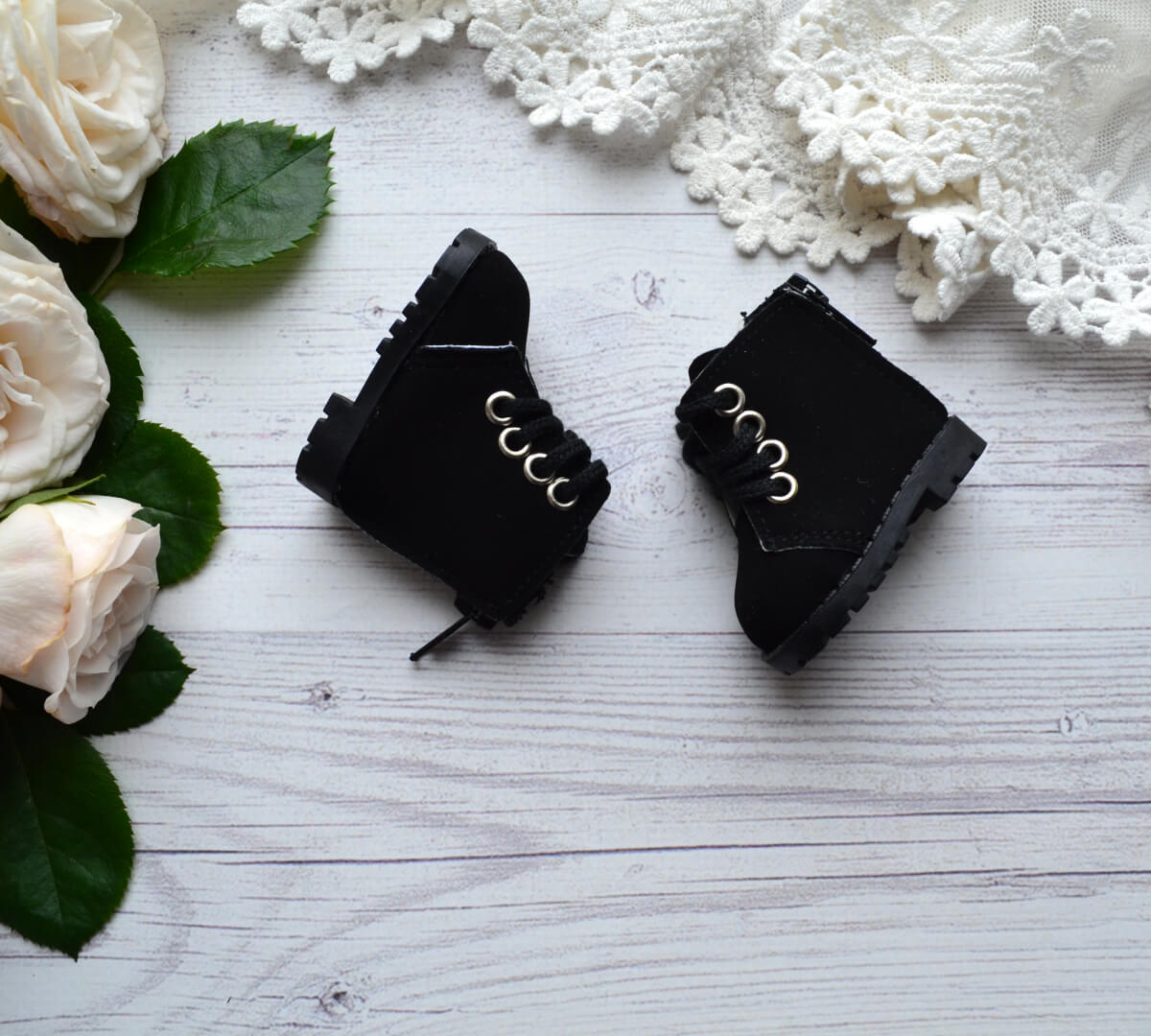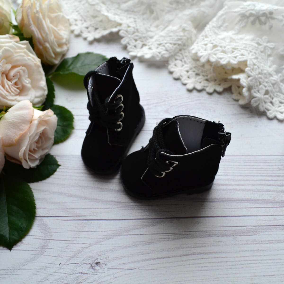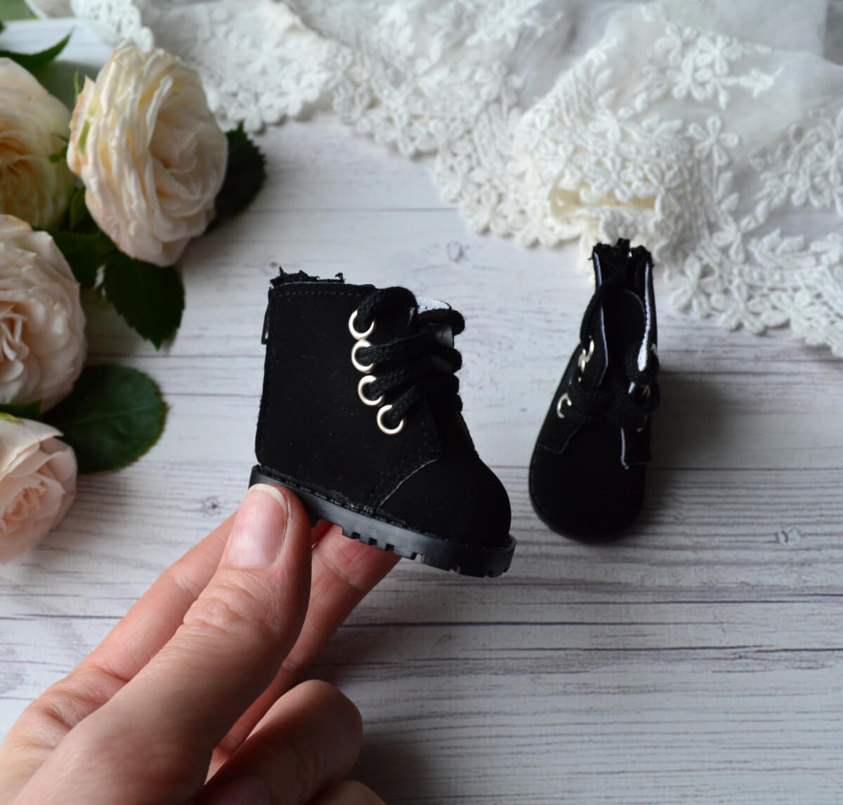 Чоботи для ляльок замшеві чорні. Розмір 5,5 * 2,5 см