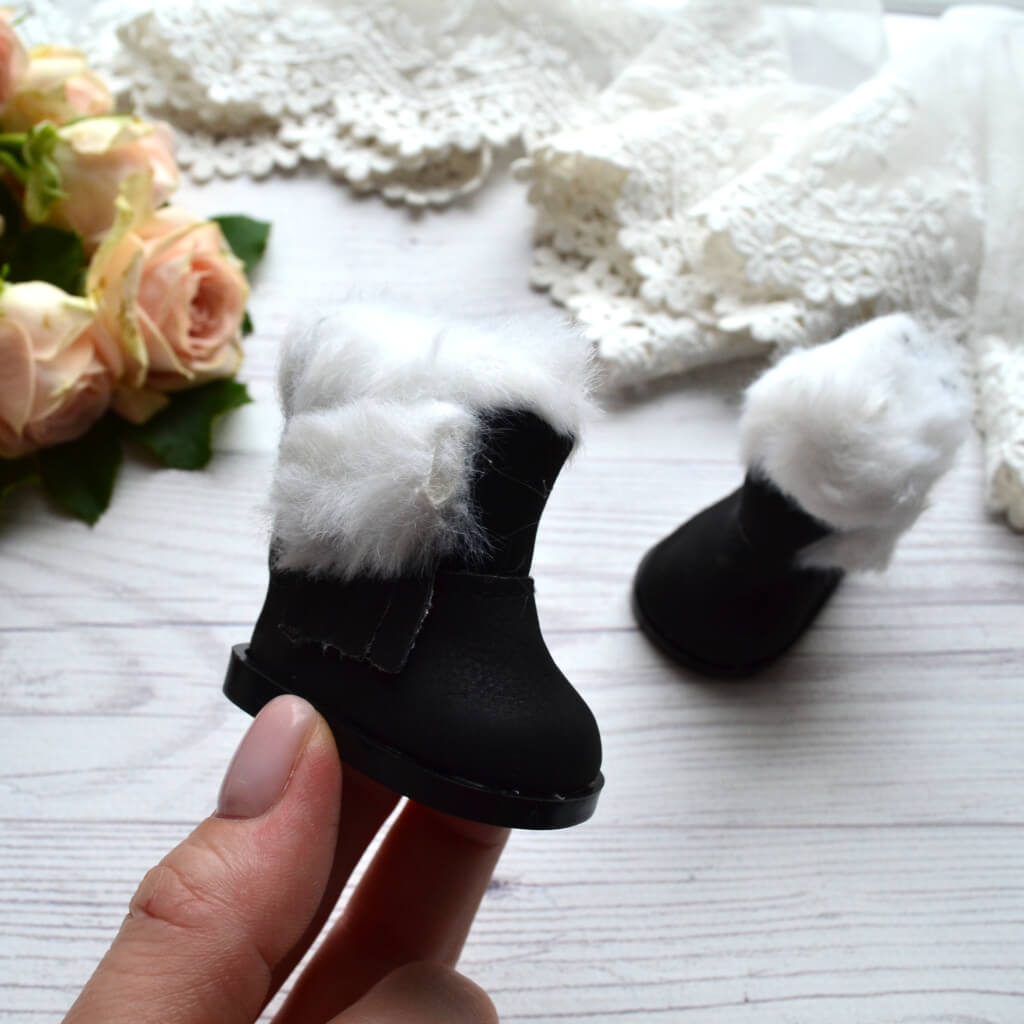 Чобітки з хутром для ляльок чорні 5.5*3см AK115