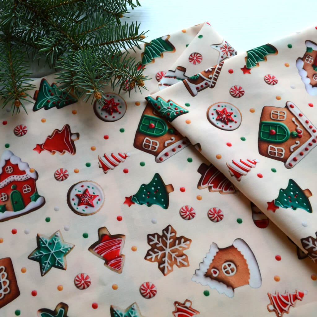 Штучна бавовна для рукоділля пряниковий будиночок. Ширина тканини 144см.