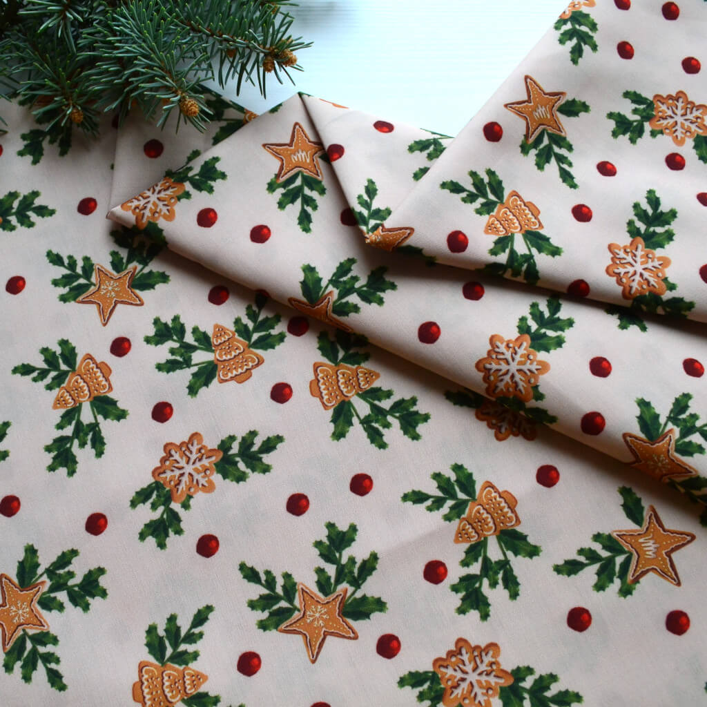 Штучна бавовна для рукоділля різдвяний пряник. Ширина тканини 144см.