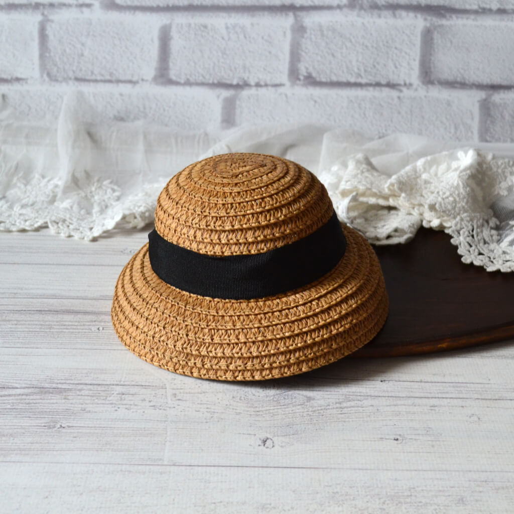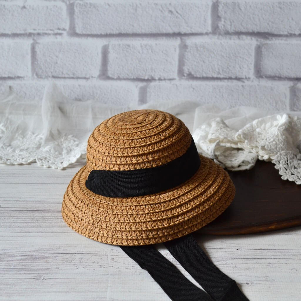Солом’яний капелюшок для ляльки зі стрічкою темний ⌀ 8см AH011