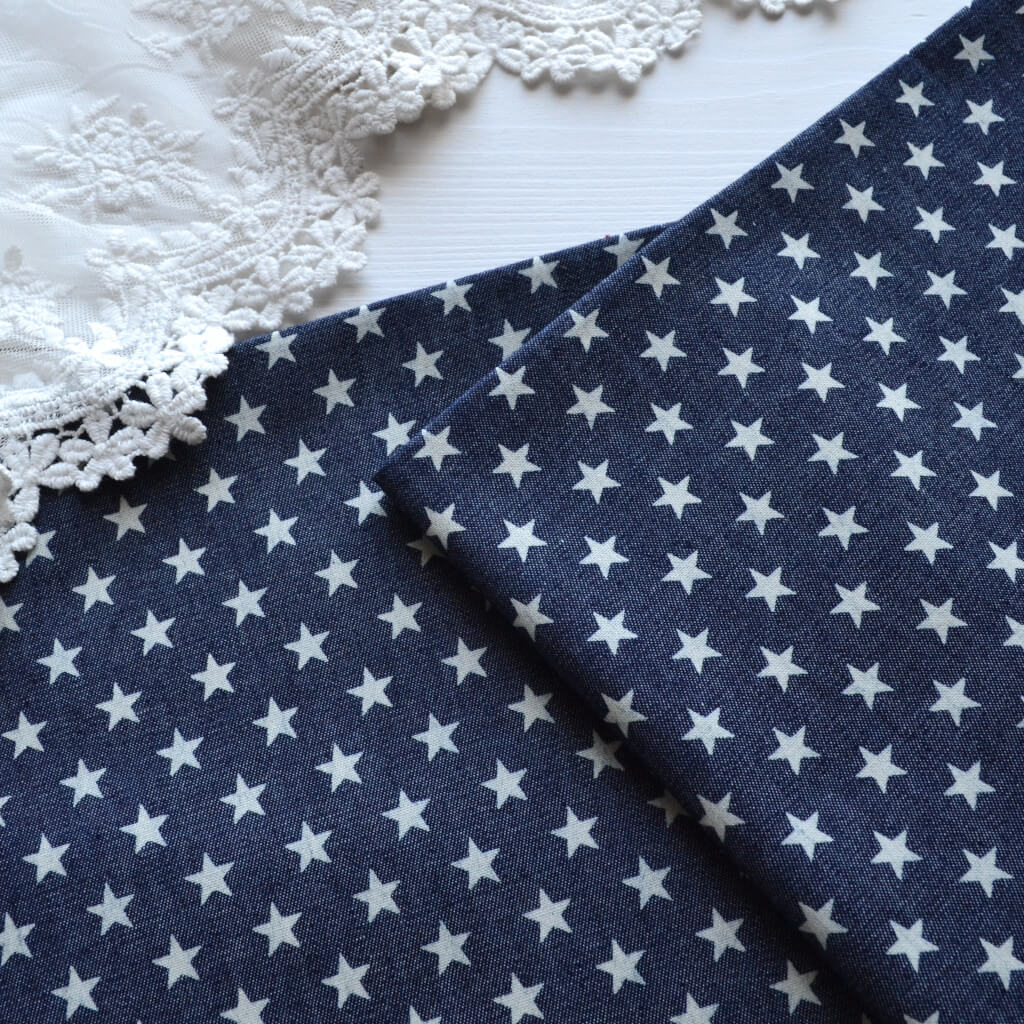 Тоненький джинс для одягу ляльки зірочки 10*8мм темно-синій 36*50см TKG028