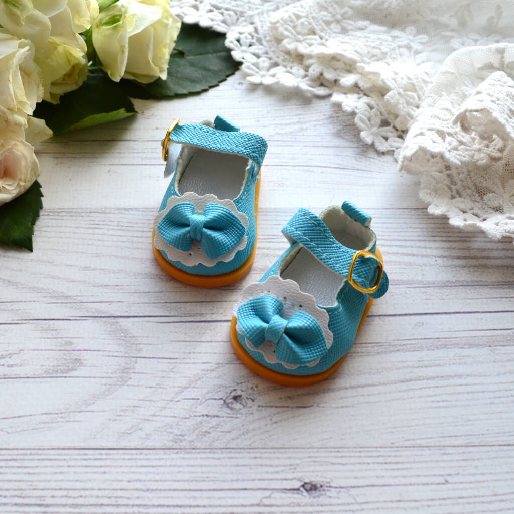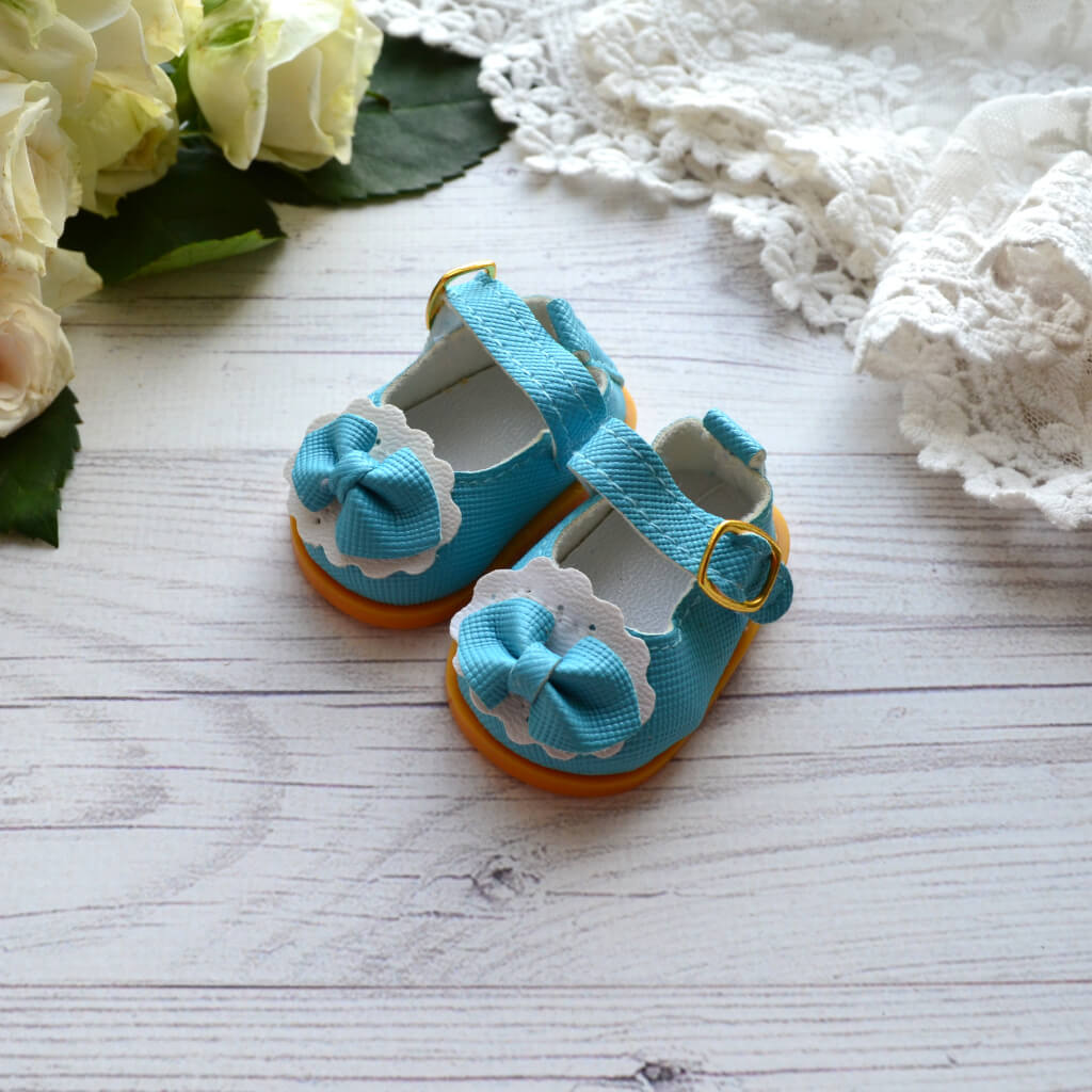 Туфельки для ляльки блакитні. Розмір 5,3 * 3,2см