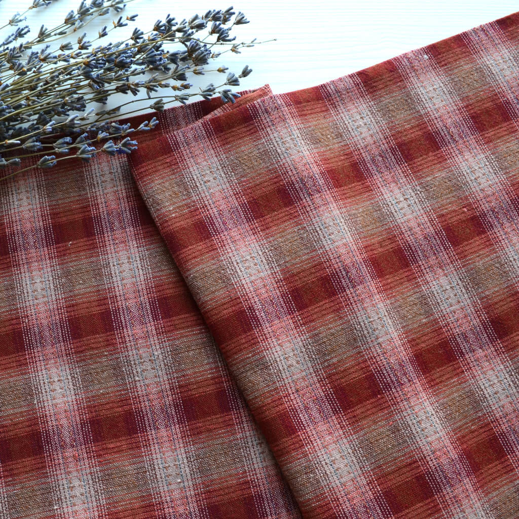 Японська фактурна бавовна бордова клітинка Відріз 24*35см TKY068