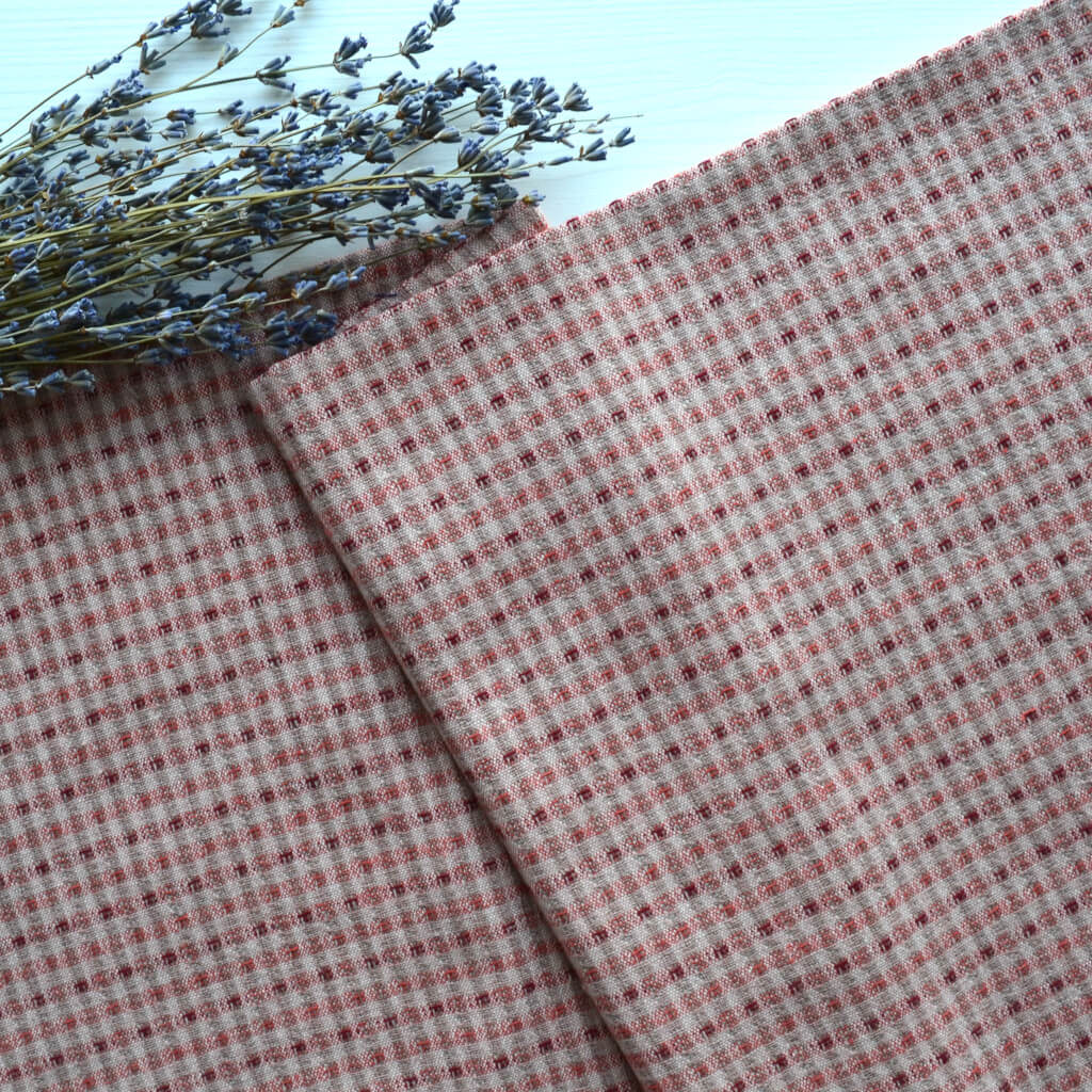 Японська фактурна бавовна брудно-рожева клітинка Відріз 24*35см TKY064