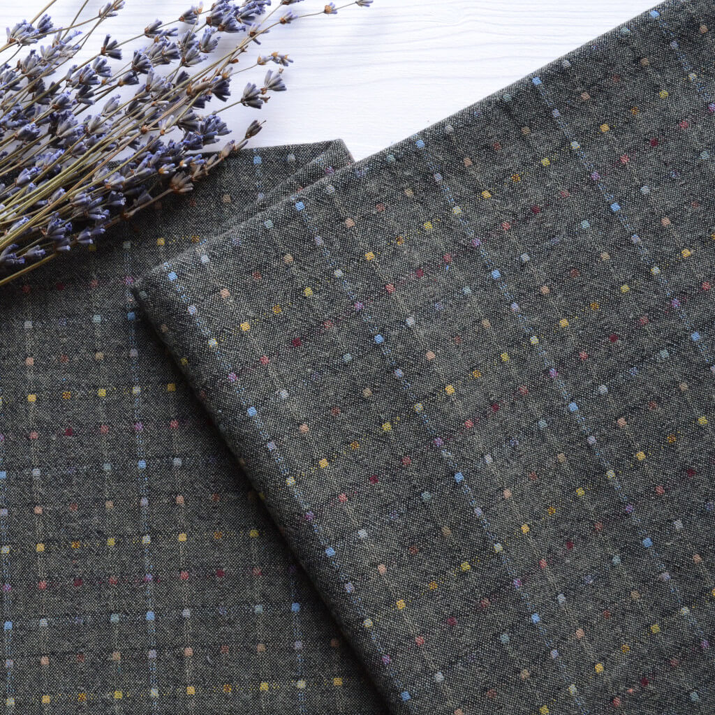 Японська фактурна бавовна клітинка з квадратиками сіро-зелена Відріз 24*35см TKY160
