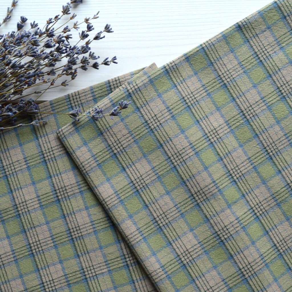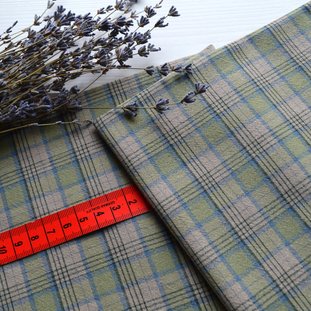 Японська фактурна бавовна сіра з зеленим клітинка Відріз 24*35см TKY020