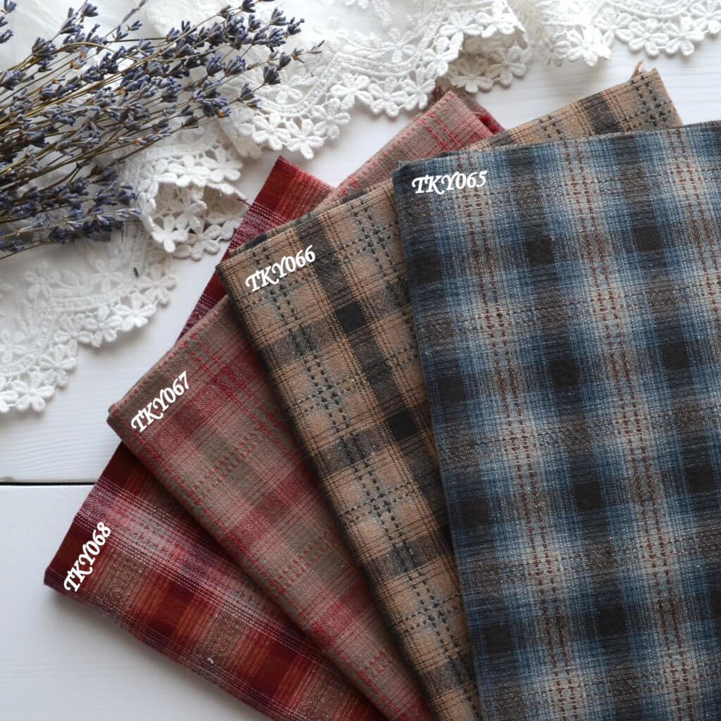 Японська фактурна бавовна світло-бордова клітинка Відріз 24*35см TKY067